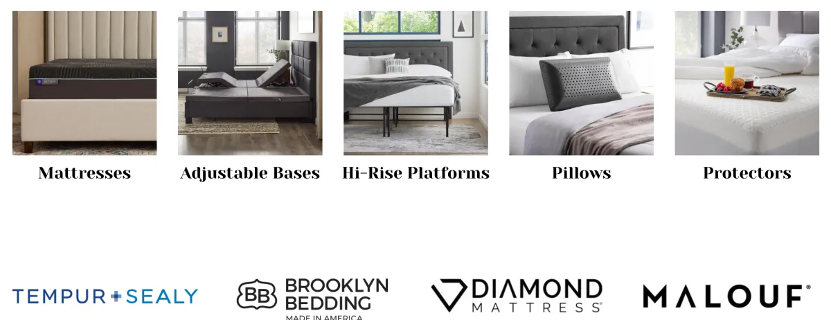 We carry memory foam, hybrid, pillow-top, and firm mattresses in all standard sizes.